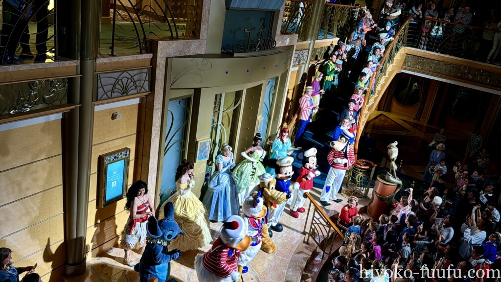 ディズニークルーズでキャラクターと会えるのは、この夜のフェアウェルパーティーが最後になります。