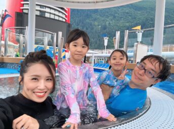 アラスカクルーズ旅行記*9〜乗船5日目・ジュノー寄港日。プール満喫、ティアナズプレイス「マルディグラナイト」[旅行7日目(DCL5日目):小1&年中子連れDCL2024]