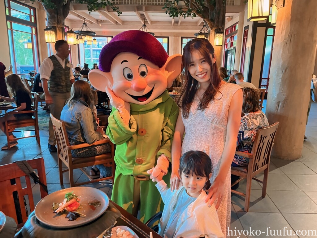 白雪姫、ドーピー、グランピー、クイーンと会えるレストランです。